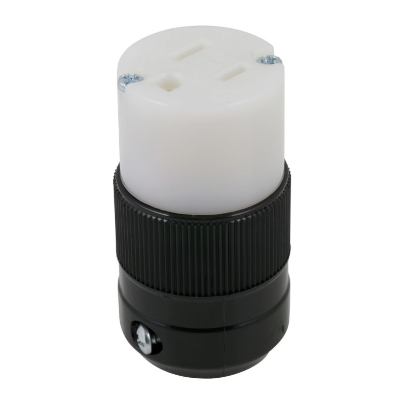 15A 125V 2P 3W (5-15R) Standard Connector – White Body in a Black Housing