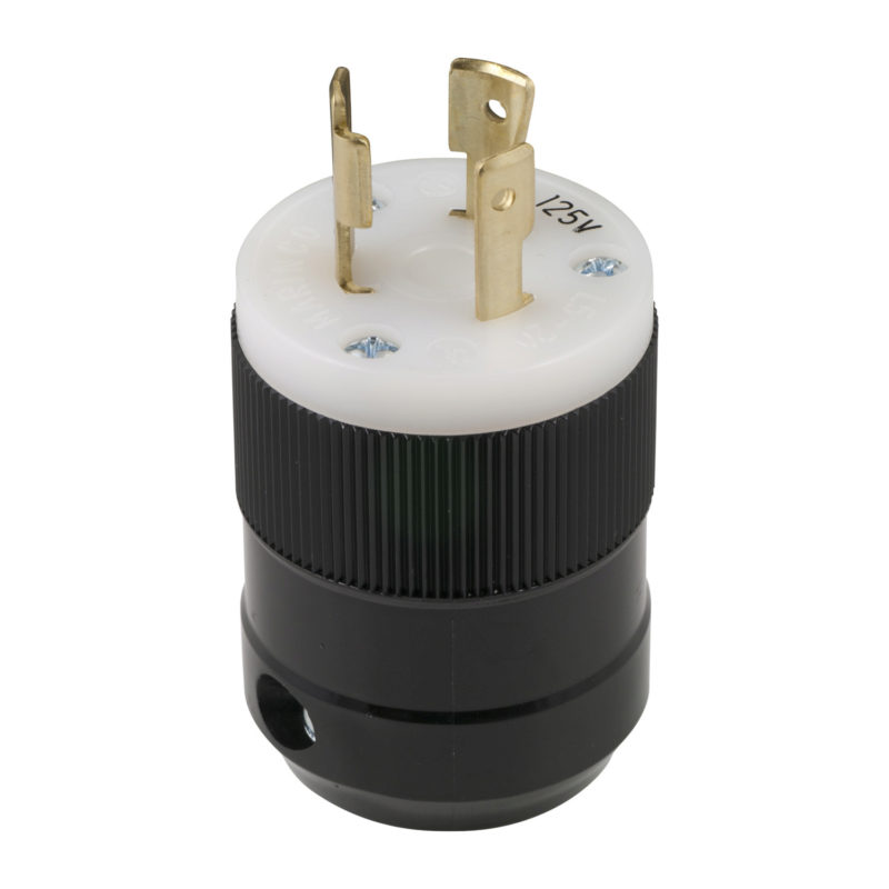 20A 125V Standard NEMA Locking Plug – White Body in a Black Housing