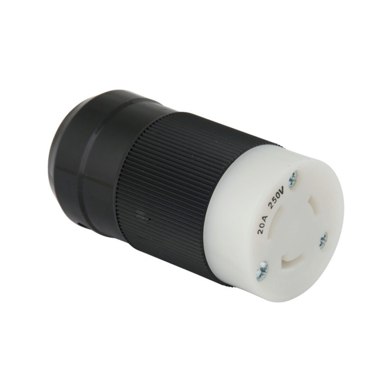 20A 250V 2P 3W (L6-20R) Standard NEMA Locking Connector – White Body in a Black Housing