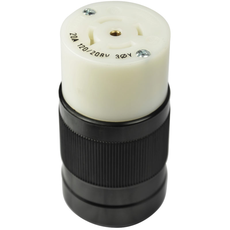 20A 3 Phase Y 120/208V Standard NEMA Locking Connector – White Body in a Black Housing
